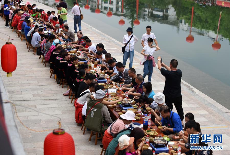 4月18日,游客在臺江縣參加苗族姊妹節(jié)長桌宴體驗活動。 當日,貴州省黔東南苗族侗族自治州臺江縣迎來一年一度的苗族姊妹節(jié)。節(jié)日期間將舉行苗族盛裝游演、千人長桌宴、千人游方體驗、苗族手工創(chuàng)意大賽等一系列活動。 姊妹節(jié)是臺江縣苗族同胞的傳統(tǒng)節(jié)日,2006年被列入第一批國家級非物質(zhì)文化遺產(chǎn)名錄。 新華社記者 楊文斌 攝
