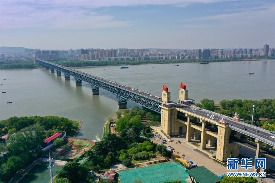 這是4月18日無人機拍攝的南京長江大橋。 新華社記者 李博 攝