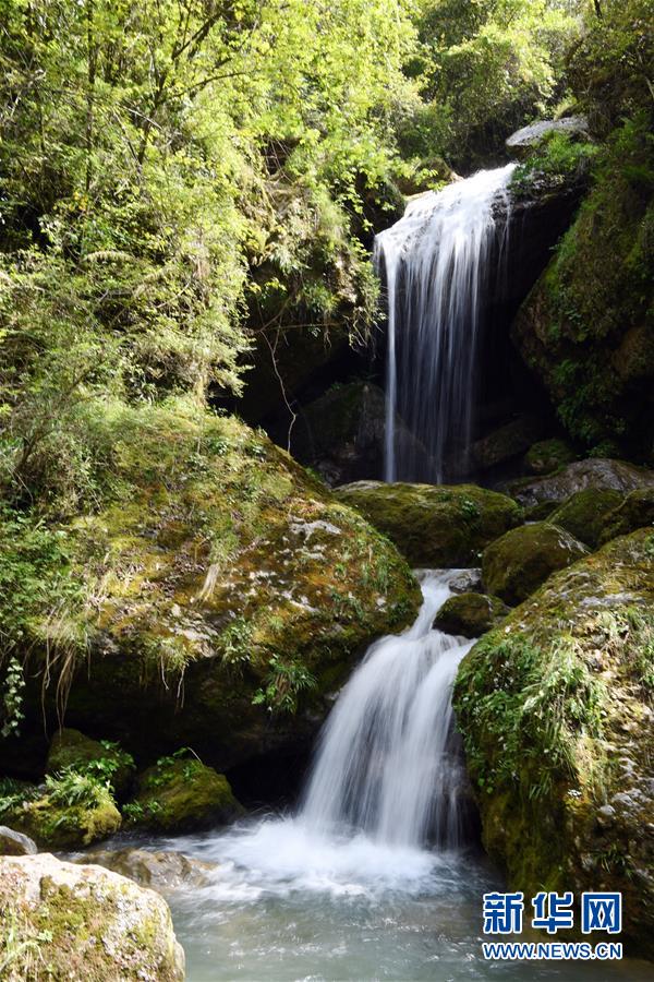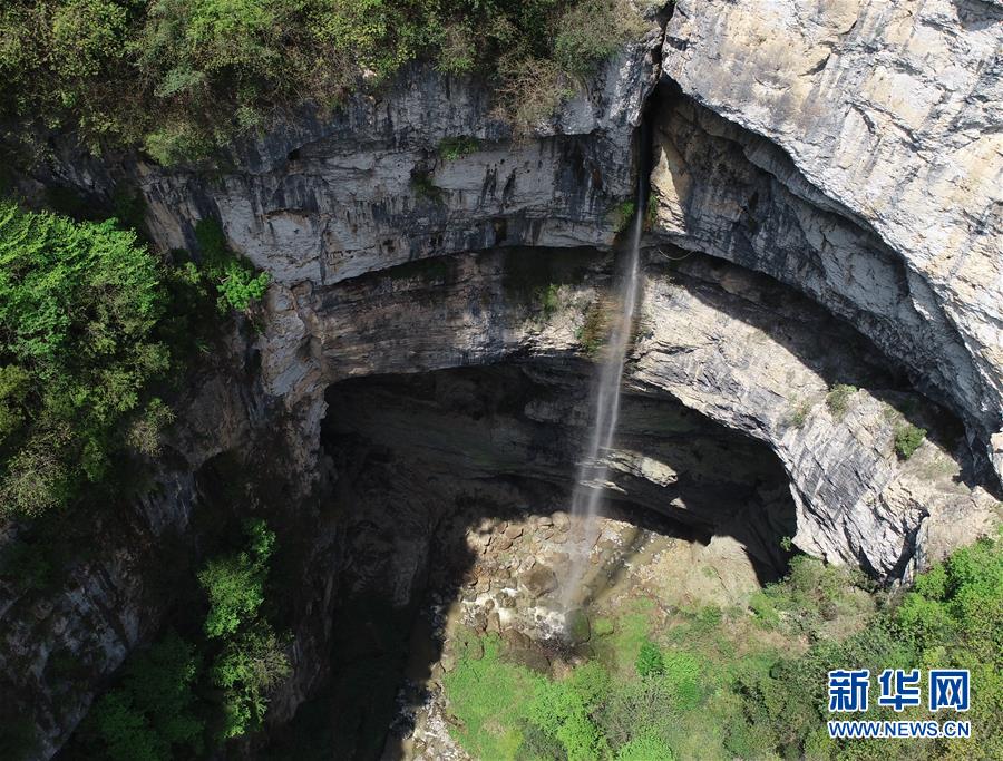 地洞河天坑底部的一處瀑布(4月22日攝)。位于陜西省漢中市寧強縣的地洞河天坑,是禪家?guī)r天坑群中規(guī)模最大的一處天坑,坑內(nèi)分布有石鐘乳、石筍,具有極高的地質(zhì)研究價值。 新華社記者 張博文 攝