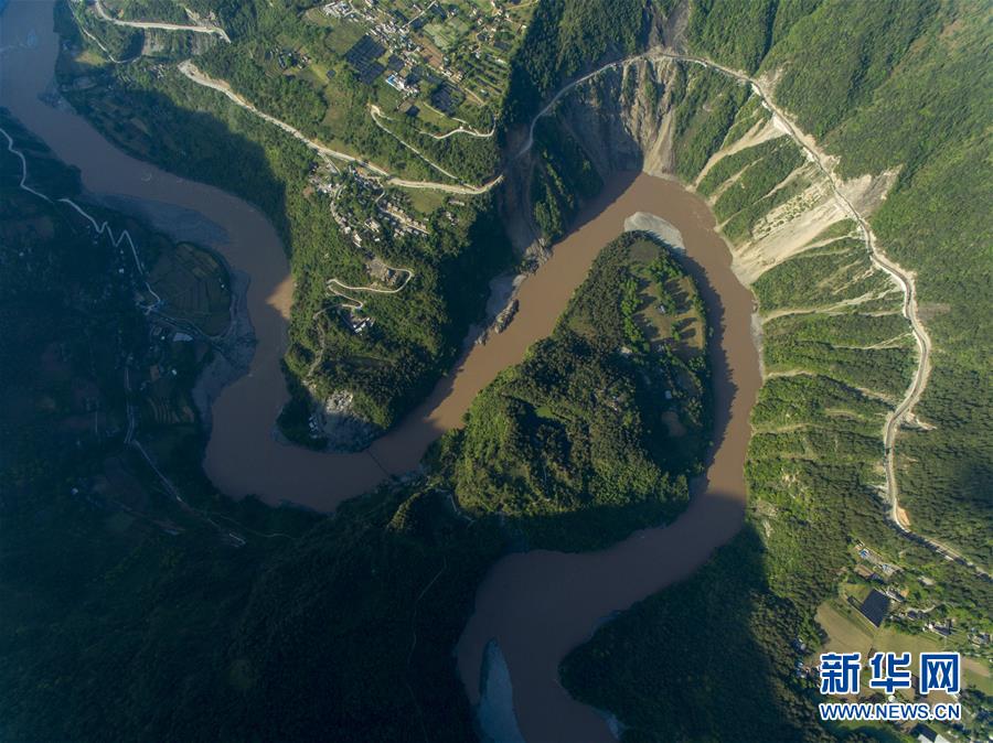 這是4月27日在云南省貢山獨龍族怒族自治縣丙中洛鎮(zhèn)拍攝的“怒江第一灣”(無人機拍攝)。 怒江自青藏高原一路奔騰向南流至云南省貢山獨龍族怒族自治縣丙中洛鎮(zhèn),高黎貢山與碧羅雪山夾江而立,江水順山勢急轉形成了一個氣勢磅礴的半圓形大灣,被稱為“怒江第一灣”。 新華社記者 江文耀 攝