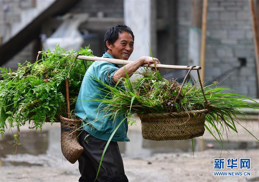 在黔桂烏英苗寨,村民勞作歸來(4月23日攝)。 新華社記者 黃孝邦 攝