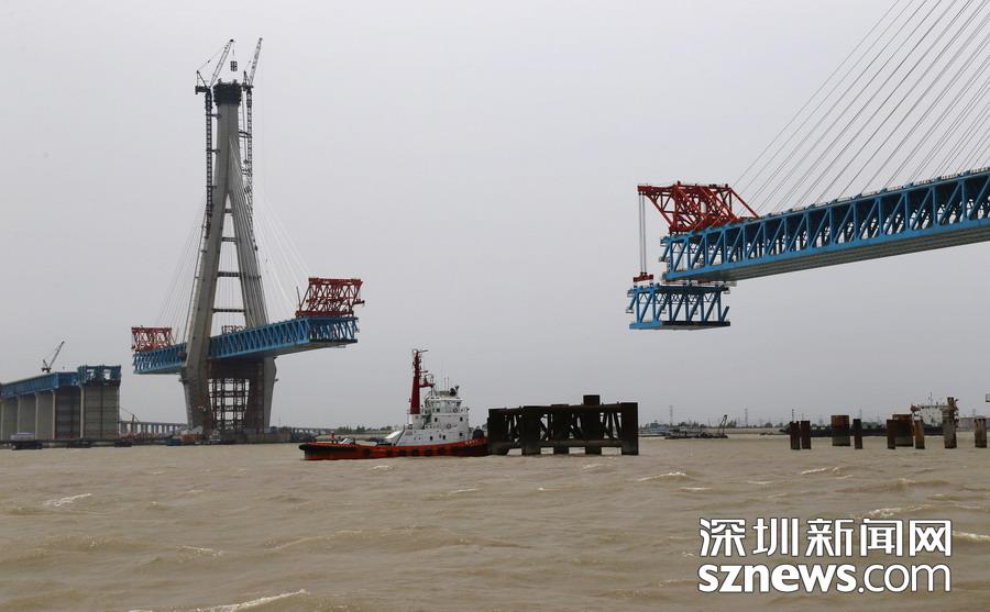 2019年5月6日,由中鐵大橋局承建的滬通長江大橋28號墩,完成了第13輪大節(jié)段鋼梁雙懸臂架設(shè)的吊裝作業(yè)。