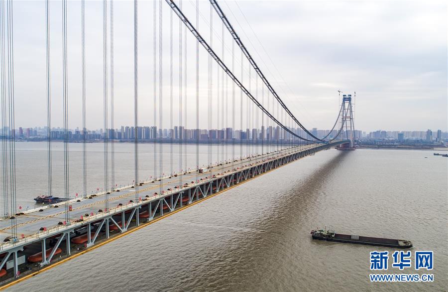 12月29日,武漢楊泗港長(zhǎng)江大橋順利合龍(無(wú)人機(jī)拍攝)。新華社記者 肖藝九 攝