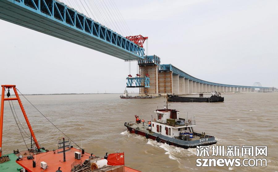 滬通長江大橋主航道橋首個(gè)鋼梁段即將合龍