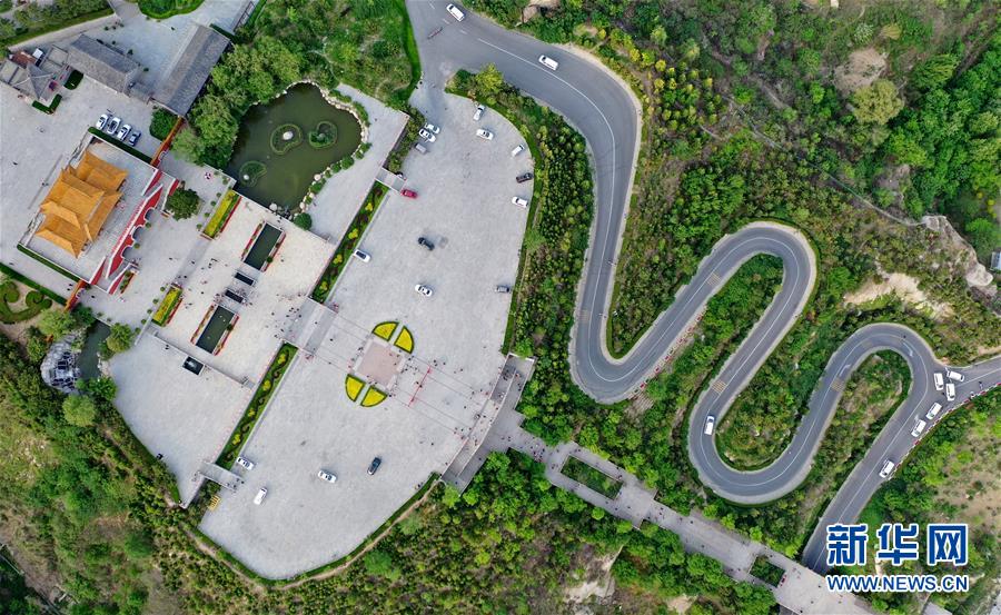 這是5月2日拍攝的盤山風(fēng)景名勝區(qū)正門景觀(無人機(jī)拍攝)。新華社記者 岳月偉 攝