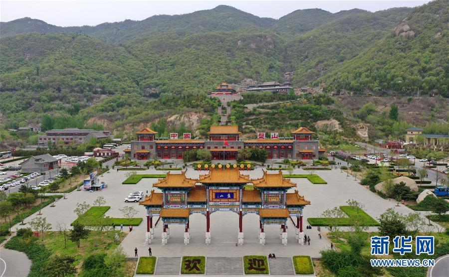 這是4月19日拍攝的盤(pán)山風(fēng)景名勝區(qū)正門(mén)景觀(無(wú)人機(jī)拍攝)。新華社記者 李然 攝