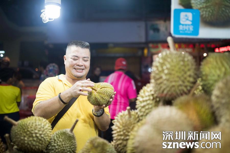 2018年8月10日,馬來西亞沙巴,Alan Tham是馬來西亞沙巴三個(gè)流量檔口的主人,這幾年發(fā)現(xiàn)趕到馬來西亞吃榴蓮的中國(guó)游客越來越多,Alan Tham三個(gè)月前開通了支付寶服務(wù),成為了一名海外碼商。最近榴蓮季來臨,每天忙得不行,不過收獲很大,一天能賣出一千公斤榴蓮。