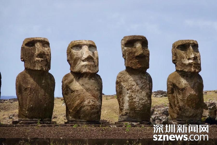 復(fù)活節(jié)島上最著名、最神秘的歷史文明遺跡是巨大的摩艾石像。李仁奇 攝
