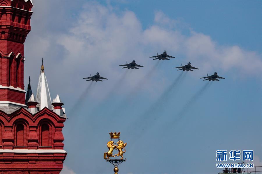5月7日,在俄羅斯首都莫斯科,米格-29SMT戰(zhàn)斗機(jī)編隊(duì)參加閱兵彩排。 當(dāng)天,莫斯科紅場舉行勝利日閱兵式彩排,完整演練9日閱兵全過程。5月9日是俄羅斯衛(wèi)國戰(zhàn)爭勝利日,莫斯科紅場閱兵儀式是當(dāng)天的主要慶?;顒?。 新華社記者 白雪騏 攝