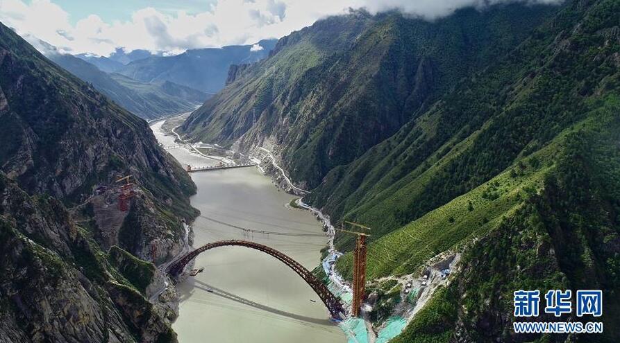 9月28日無人機(jī)拍攝的川藏鐵路拉林段重點標(biāo)志性工程藏木特大橋。當(dāng)日,隨著最后一節(jié)鋼管拱的對位和鎖定完畢,川藏鐵路拉林段藏木特大橋成功合龍,標(biāo)志著大橋主體結(jié)構(gòu)施工取得了關(guān)鍵性勝利。藏木特大橋由中國中鐵廣州局集團(tuán)承建,拱高112米,橋橫跨雅魯藏布江峽谷,水深66米。新華社記者普布扎西攝