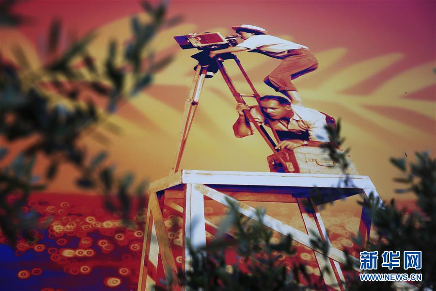 5月13日,在法國(guó)戛納,工作人員在為即將召開(kāi)的戛納電影節(jié)做準(zhǔn)備。
