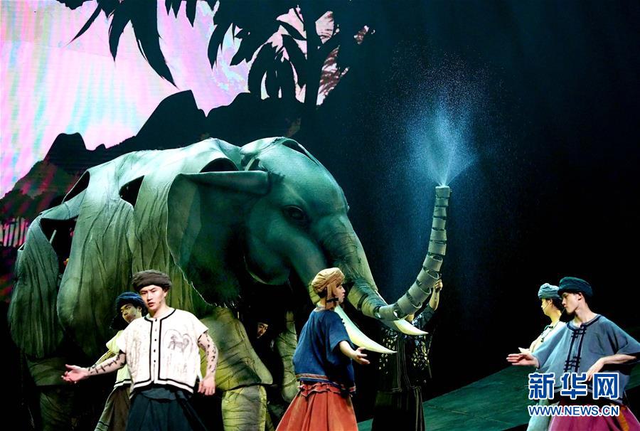 5月15日在上海美琪大戲院拍攝的新版大型人偶舞臺(tái)劇《最后一頭戰(zhàn)象》劇照。 當(dāng)日,作為第12屆中國(guó)藝術(shù)節(jié)的參演劇目,大型人偶舞臺(tái)劇《最后一頭戰(zhàn)象》在經(jīng)過4次硬件技術(shù)升級(jí)和故事修改后亮相上海美琪大戲院。 新華社記者 任瓏 攝