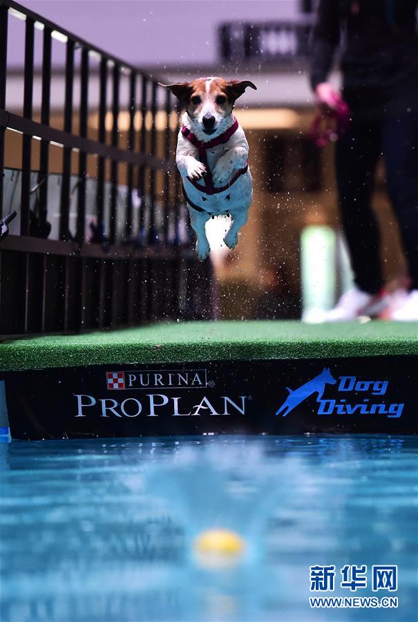 5月19日,在德國(guó)多特蒙德舉行的寵物展上,一只獵犬參加跳水比賽。 為期三天的德國(guó)多特蒙德“狗和貓”寵物展19日落幕。寵物展期間,人們帶著自己的“萌寵”來(lái)到會(huì)場(chǎng),參與寵物跳水、舞蹈、選美等趣味比賽,并與其他寵物愛(ài)好者及展商交流互動(dòng)。 新華社記者逯陽(yáng)攝