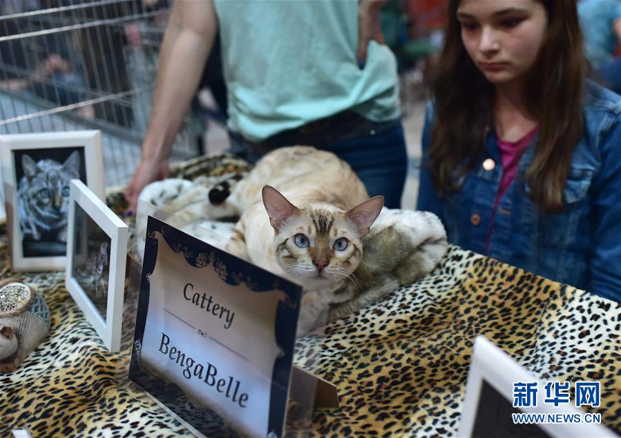 這是5月19日在德國(guó)多特蒙德舉行的寵物展上拍攝的一只孟加拉貓。 為期三天的德國(guó)多特蒙德“狗和貓”寵物展19日落幕。寵物展期間,人們帶著自己的“萌寵”來(lái)到會(huì)場(chǎng),參與寵物跳水、舞蹈、選美等趣味比賽,并與其他寵物愛(ài)好者及展商交流互動(dòng)。 新華社記者逯陽(yáng)攝
