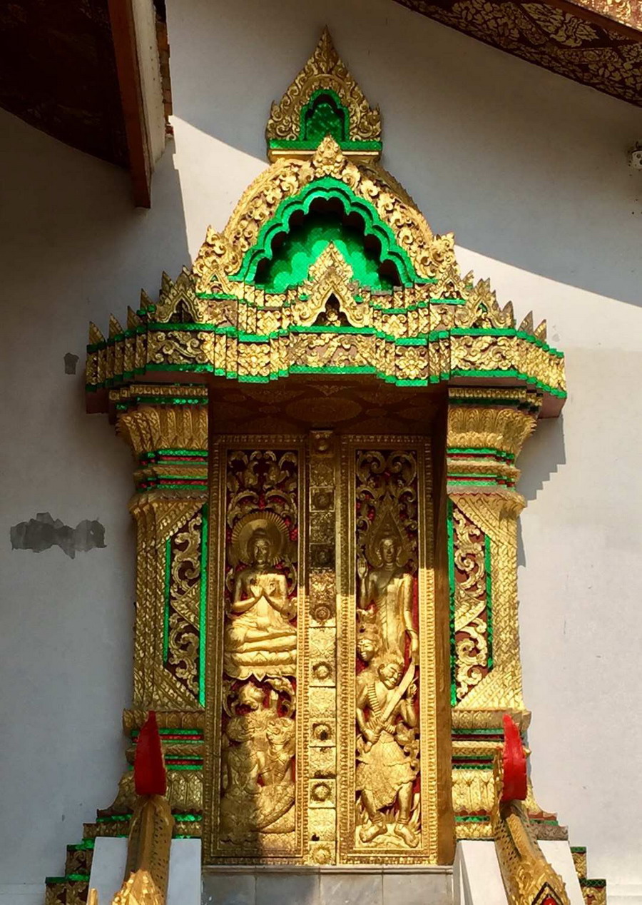 大殿后墻上用琉璃鑲嵌的生命之樹圖案和幾個(gè)佛教故事十分精美。