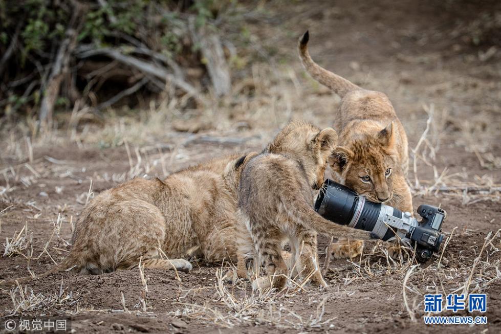 近日,非洲博茨瓦納馬沙圖野生動(dòng)物保護(hù)區(qū)內(nèi)一頭獅子叼起攝影師掉落在地上的相機(jī),之后還將相機(jī)交給小獅子們玩耍,看起來(lái)十分好奇,而攝影師非常無(wú)奈?,F(xiàn)年57歲的叢林探險(xiǎn)家Barbara Jensen Vorster在一輛越野車(chē)上為馬沙圖野生動(dòng)物保護(hù)區(qū)的獅群拍照時(shí),相機(jī)不小心掉到了地上。砰的一聲響驚動(dòng)了母獅子,它向攝影師方向移動(dòng),迫使探險(xiǎn)隊(duì)撤退。(圖片來(lái)源:視覺(jué)中國(guó))