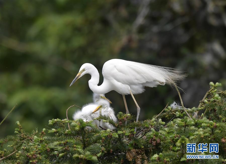 在江西省南昌市新建區(qū)象山森林公園內(nèi),白鷺和自己的雛鳥(niǎo)在一起(5月21日攝)。 近日,在江西省南昌市新建區(qū)象山森林公園內(nèi),已安家筑巢的大批鷺鳥(niǎo)陸續(xù)孵化出了后代。象山森林公園有著“鷺鳥(niǎo)王國(guó)”的美譽(yù),生態(tài)環(huán)境良好,每年都會(huì)吸引白鷺、蒼鷺、夜鷺等種類的鷺鳥(niǎo)飛抵棲息和繁衍后代。 新華社記者 彭昭之 攝