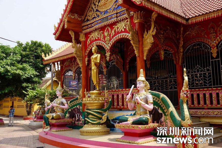 西蒙寺是萬(wàn)象香火最旺盛的一個(gè)寺廟,又稱神城寺,每天有很多當(dāng)?shù)厝思坝慰蛠?lái)這里祈福,尤其受泰國(guó)游客鐘愛(ài)。李仁奇 攝