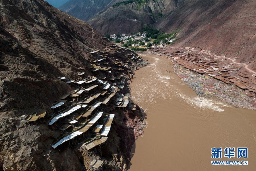 這是西藏芒康縣納西民族鄉(xiāng)的古鹽田景觀(5月22日無人機拍攝)。 位于西藏昌都芒康縣瀾滄江畔的古鹽田,至今仍保持最原始的手工曬鹽方式。據史料記載,唐朝時期當?shù)鼐烷_始曬鹽。鹽田在瀾滄江兩岸依山而建,由多根木柱搭架,架上用透水性強的泥土鋪成平面夯實,當?shù)鼐用駨臑憸娼系柠}井、鹽池中取出鹵水倒入鹽田,經陽光蒸曬、風干,結晶成鹽。遠遠望去,鹽田錯落有致,田中鹵水宛若鏡面,形成壯麗奇觀。 新華社記者 李鑫 攝