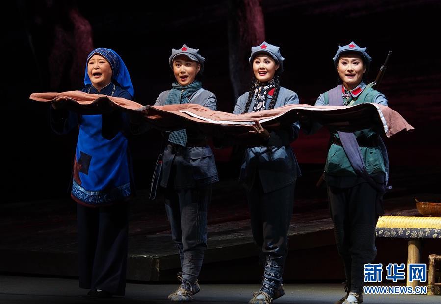 5月27日,演員在上海美琪大戲院表演現(xiàn)代京劇《紅軍故事》 。 新華社記者 任瓏 攝