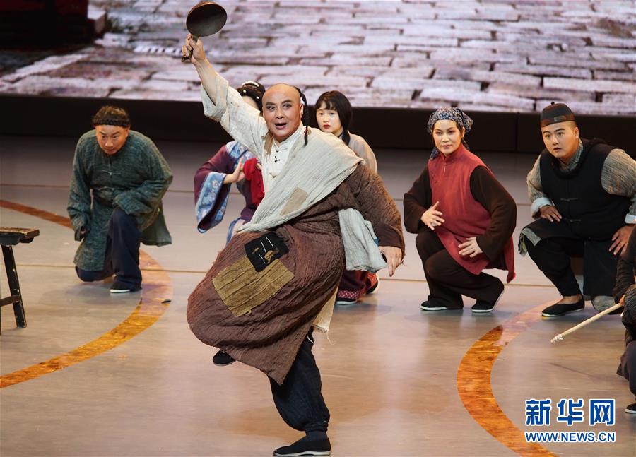 6月2日,獲得文華表演獎(jiǎng)的演員梁偉平在第十二屆中國藝術(shù)節(jié)閉幕式上匯報(bào)演出淮劇《武訓(xùn)先生》選段。 新華社記者 任瓏 攝