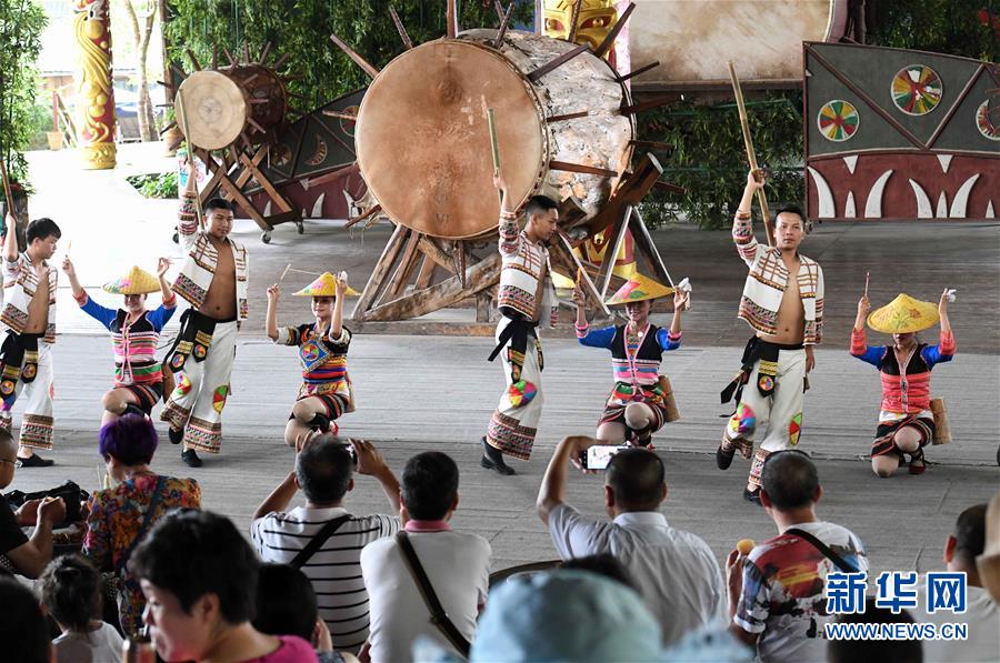 游客在觀賞基諾族大鼓舞表演(6月1日攝)。 在云南省西雙版納傣族自治州景洪市基諾山基諾族鄉(xiāng)的基諾族村寨,每天的基諾大鼓舞表演吸引了眾多游客前來觀賞體驗,帶動了基諾族群眾就業(yè)和增收?;Z族大鼓舞蘊涵豐富的歷史文化內(nèi)涵,已被列入國家級非物質(zhì)文化遺產(chǎn)保護名錄。 新華社記者 楊宗友 攝
