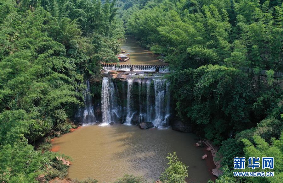 貴州赤水四洞溝景區(qū)一景(6月4日攝)。 貴州遵義赤水市有眾多大大小小的瀑布群,素有“千瀑之市”的美譽(yù),飛瀑美景吸引八方游客前來(lái)賞景度假。 新華社記者馮為民攝
