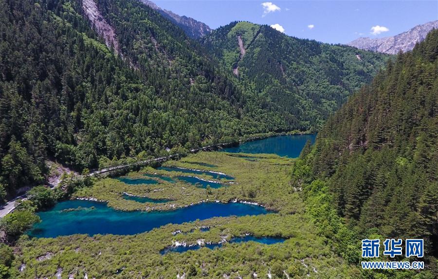 這是九寨溝景區(qū)的鏡海景點(6月5日無人機拍攝)。新華社記者薛玉斌攝