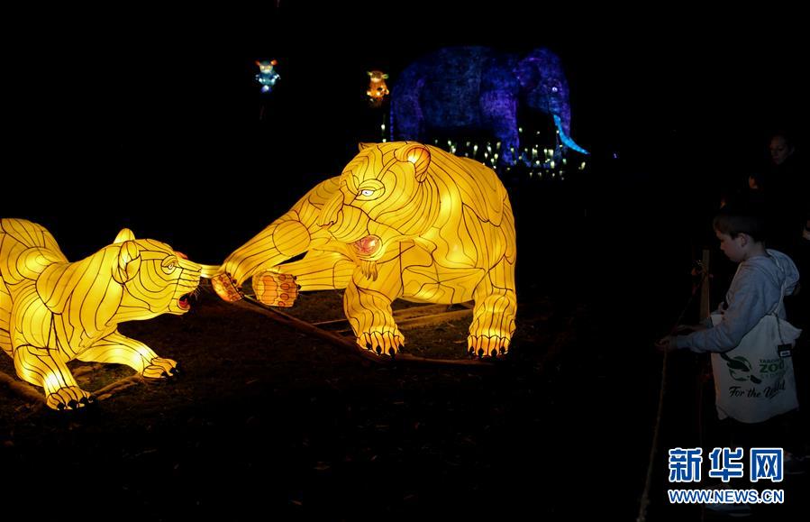 6月8日,在澳大利亞悉尼塔朗加動(dòng)物園,游客參觀動(dòng)物造型花燈。新華社記者 白雪飛 攝