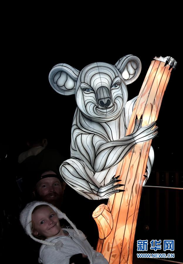 6月8日,在澳大利亞悉尼塔朗加動(dòng)物園,游客參觀考拉造型花燈。新華社記者 白雪飛 攝