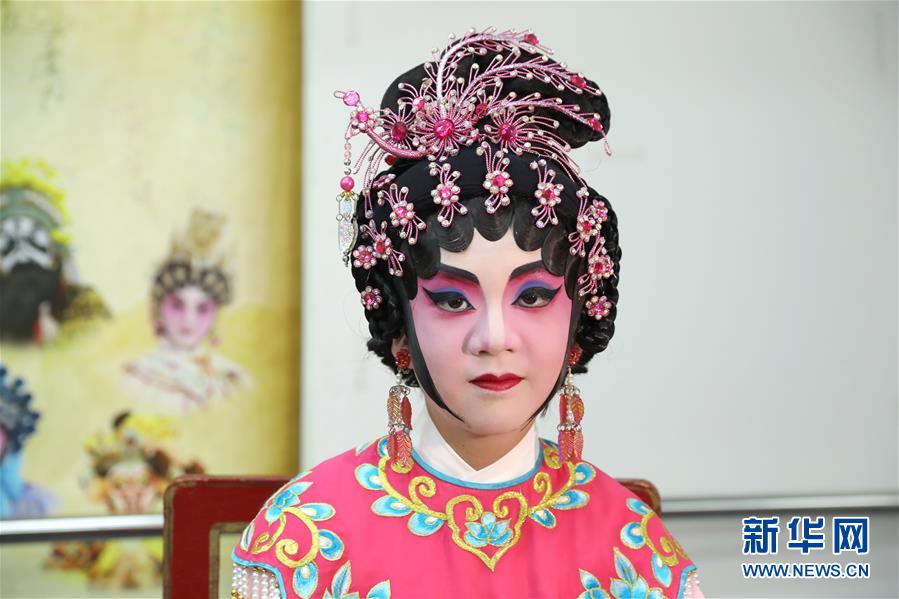 粵劇小演員陸瑞徽飾演折子戲《艷曲醉周郎》里的小喬(6月8日攝)。 聲輝粵劇推廣協(xié)會(huì)成立于2003年,是香港重要粵劇藝術(shù)團(tuán)體之一,致力于向青少年推廣粵劇。協(xié)會(huì)目前有兩個(gè)初班,3個(gè)中班,一個(gè)青少年班。粵劇又稱(chēng)“廣東大戲”,表演技藝包括“唱做念打”,即唱功、身段、臺(tái)詞、武打,主要流行于廣東、廣西和香港、澳門(mén)等地區(qū)。2009年,粵劇被列入聯(lián)合國(guó)教科文組織人類(lèi)非物質(zhì)文化遺產(chǎn)代表作名錄,今年正逢十周年。 新華社記者 吳曉初 攝