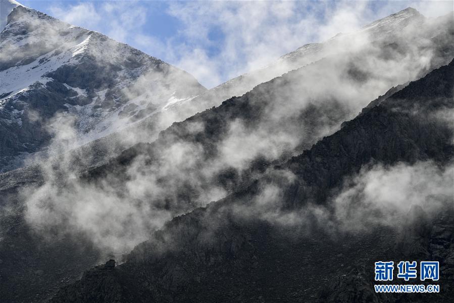 拉依布拉克牧場山間云霧繚繞(6月22日攝)。新華社記者 胡虎虎 攝