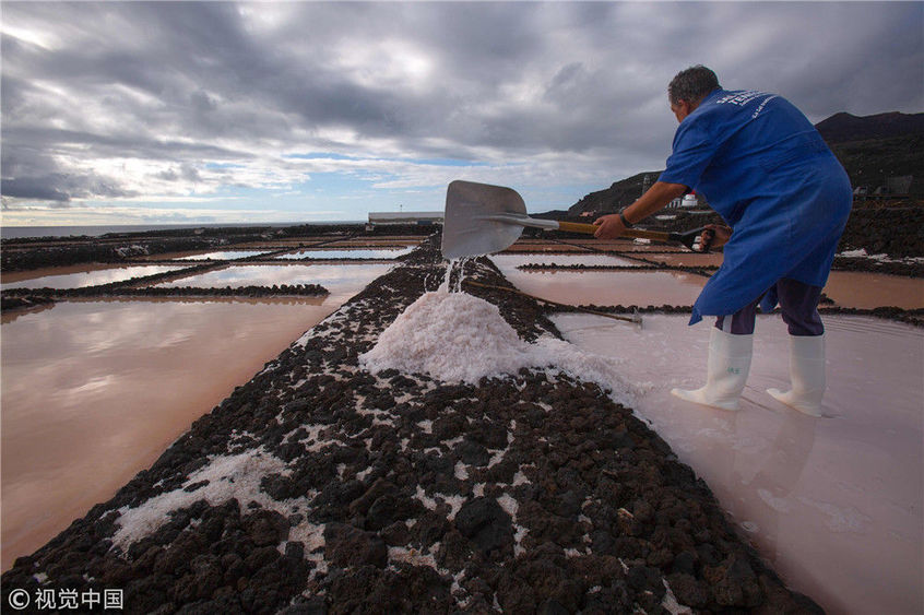 當?shù)貢r間2018年11月26日,西班牙拉斯帕馬斯島,實拍薩利納斯豐卡連特鹽田。DESIREE MARTIN /視覺中國