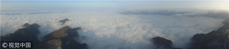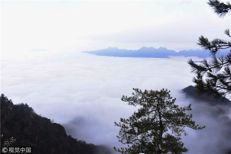 2019年3月3日,陜西商洛,位于鎮(zhèn)安縣的塔云山景區(qū)云海翻騰,宛如仙境。袁景智/視覺中國 編輯/陳進(jìn)