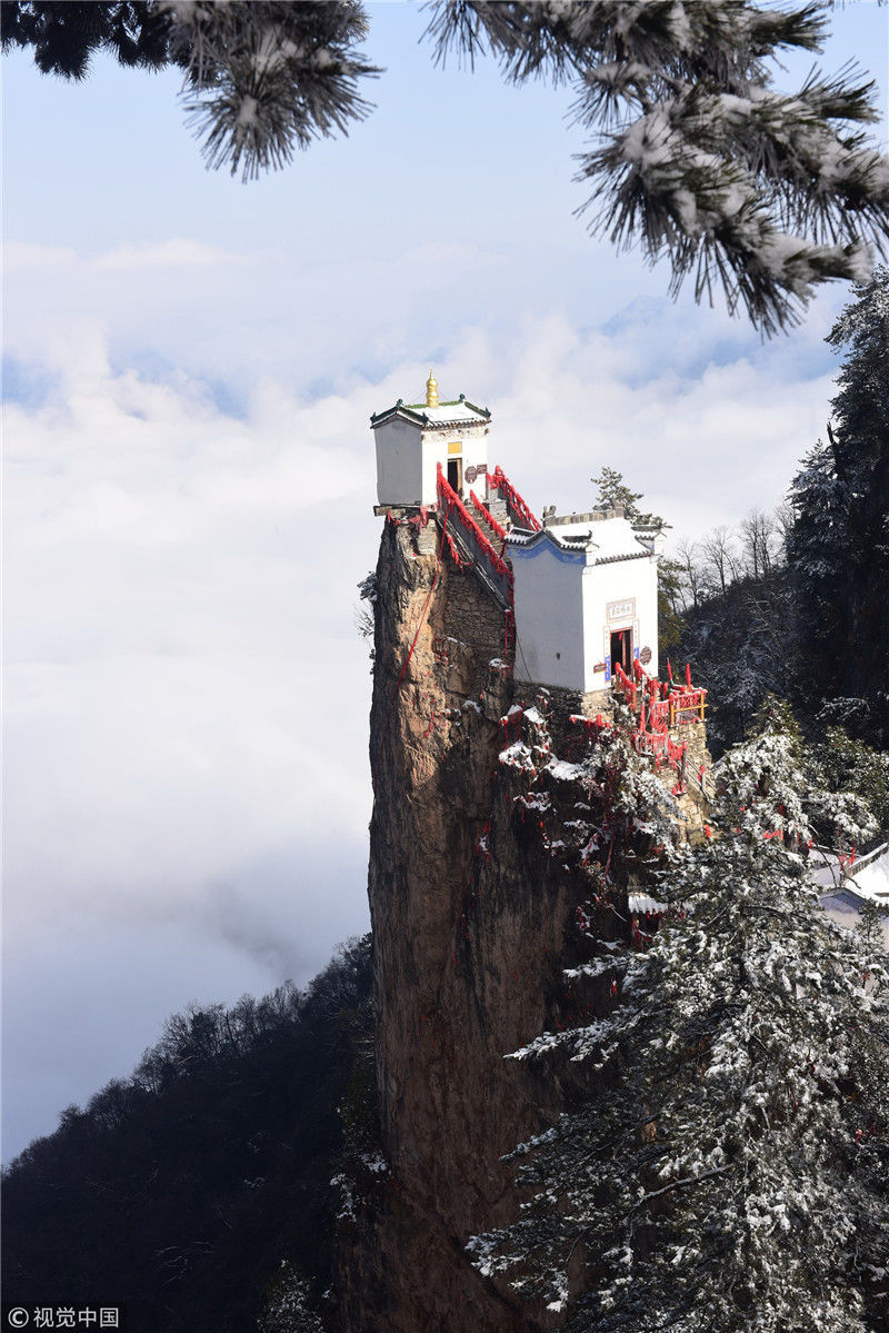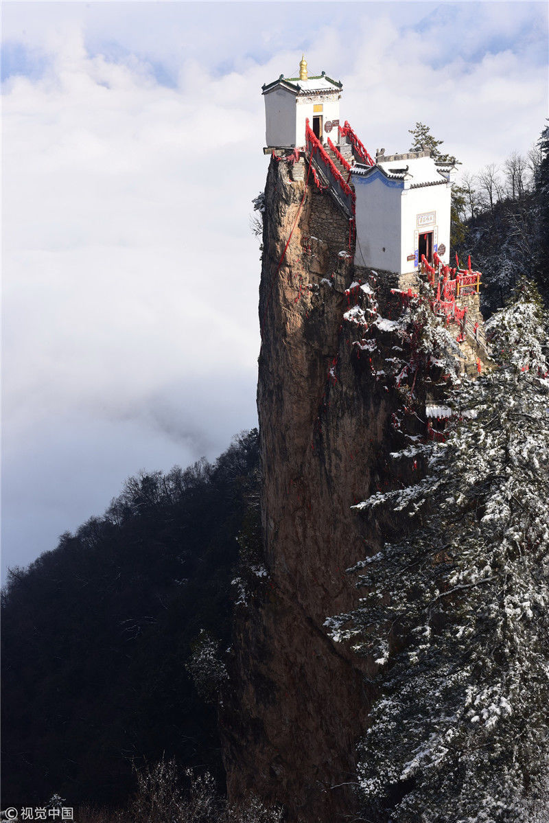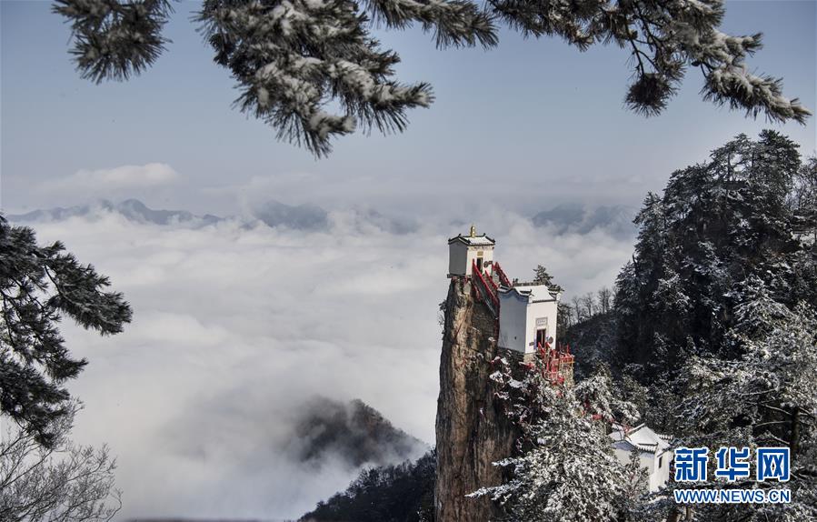 3月3日拍攝的塔云山金頂觀音殿。雪后初霽,秦嶺深處的塔云山景區(qū)云海翻騰,宛如仙境。位于陜西省鎮(zhèn)安縣柴坪鎮(zhèn)境內(nèi)的塔云山,其主峰上的古建筑群始建于明正德年間,其中金頂觀音殿建于塔云山萬仞絕頂之上,遠(yuǎn)遠(yuǎn)望去,壯觀無比。 新華社記者陶明攝