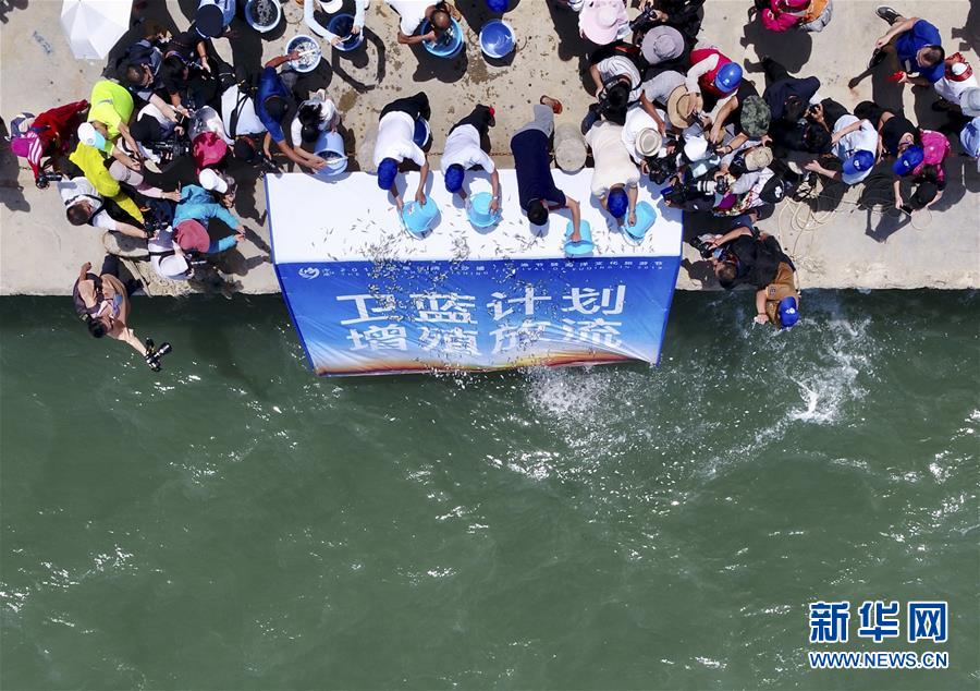 8月3日,首屆福清開漁節(jié)增殖放流活動上人們在向大海投放魚苗(無人機拍攝)。