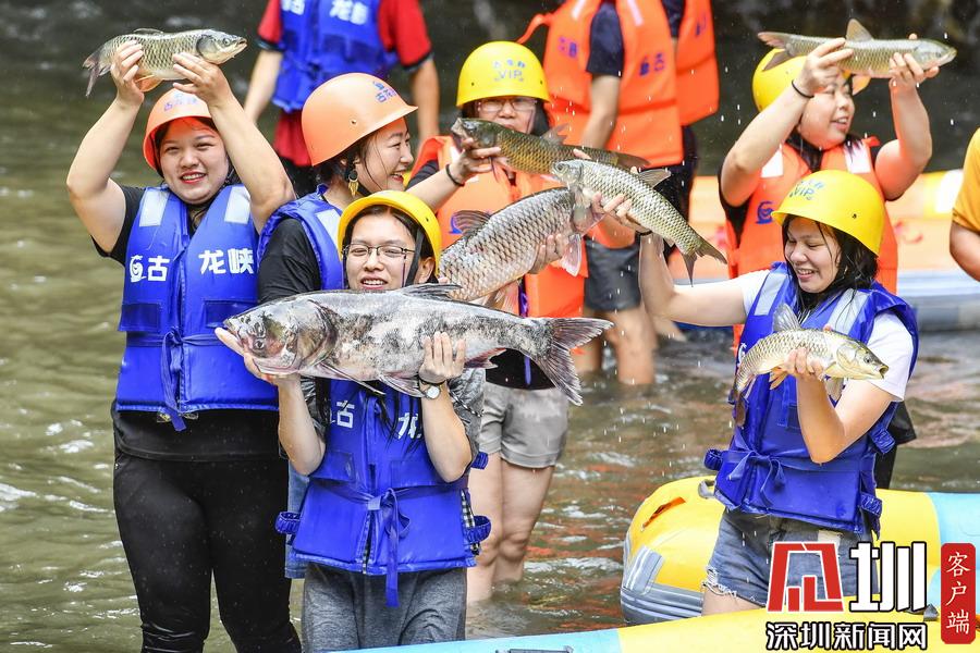 “韋帕”剛登陸廣東,清遠(yuǎn)古龍峽漂流景區(qū)就開(kāi)始泄洪,上萬(wàn)斤水庫(kù)大魚(yú)隨著泄洪道“越獄”,引來(lái)上千名游客下艇捕魚(yú),漂流河道上演了幾個(gè)小時(shí)的“人魚(yú)”大戰(zhàn),有的捕魚(yú)高手竟然捉了一漂流艇的魚(yú)回家。