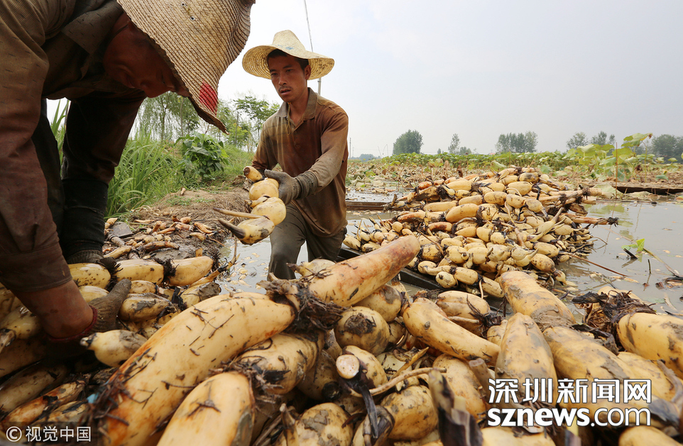 藕農(nóng)泥中“掘金”初秋時(shí)節(jié)采藕忙