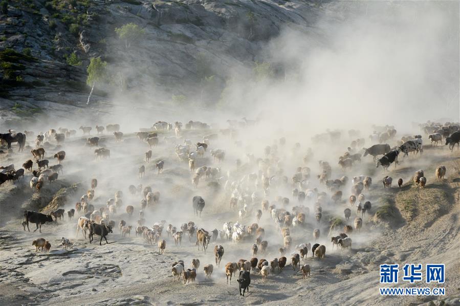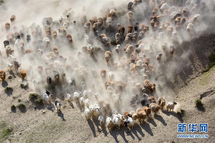6月6日,新疆阿勒泰地區(qū)福海縣牧民趕著牲畜向夏季牧場(chǎng)遷徙新華社記者 丁磊 攝