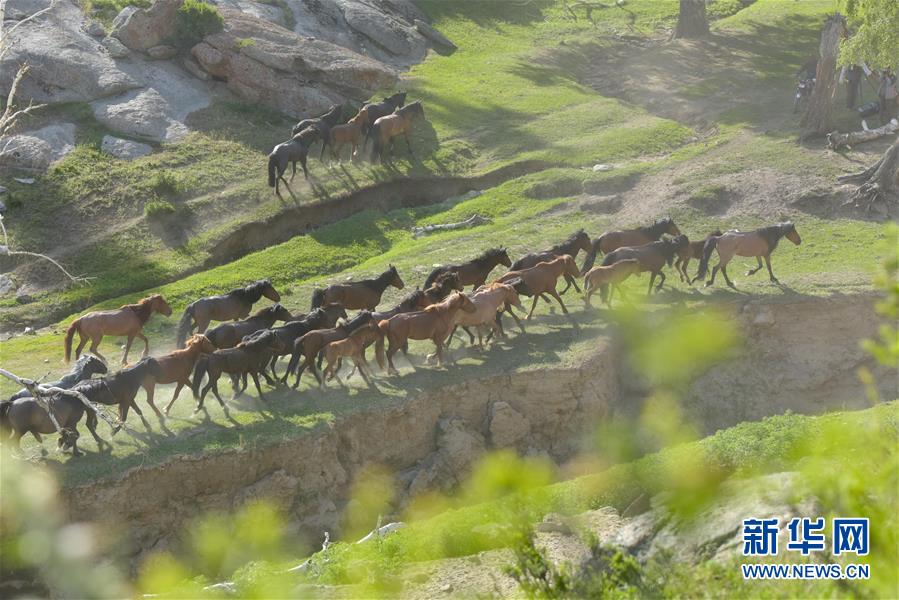 這是牧道上轉(zhuǎn)場的馬群(6月6日攝)。新華社記者丁磊攝
