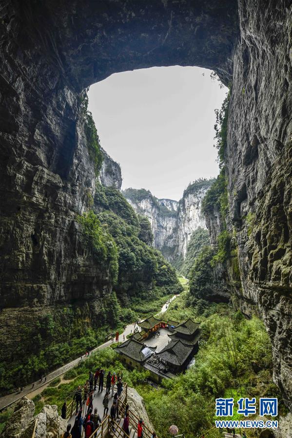 游客在天生三橋景區(qū)內(nèi)的天龍橋景點游覽(3月27日攝)。 新華社記者劉潺攝