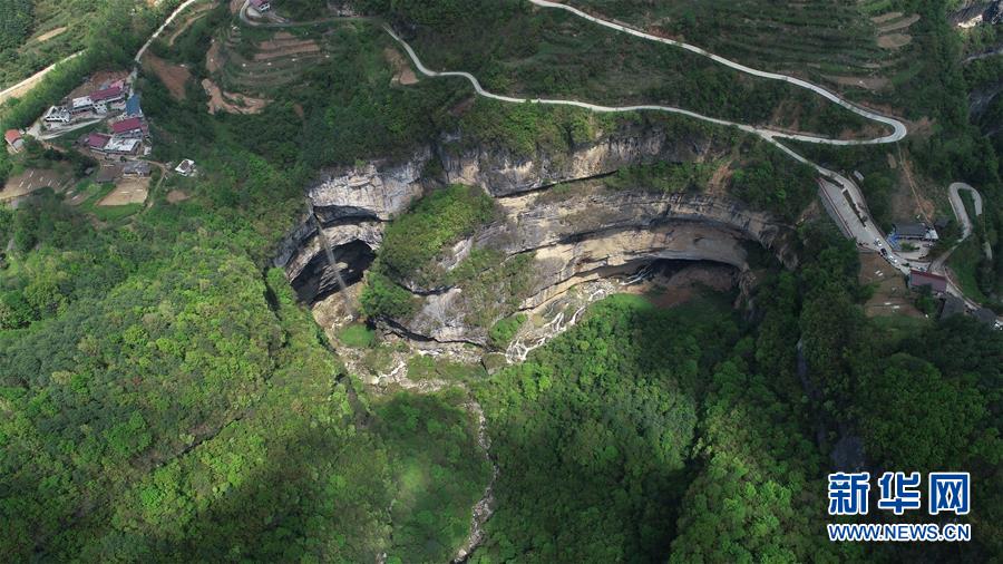 這是在陜西省漢中市寧強縣火石子村用無人機拍攝的地洞河天坑。位于陜西省漢中市寧強縣的地洞河天坑,是禪家?guī)r天坑群中規(guī)模最大的一處天坑,坑內分布有石鐘乳、石筍,具有極高的地質研究價值。新華社 張博文 攝