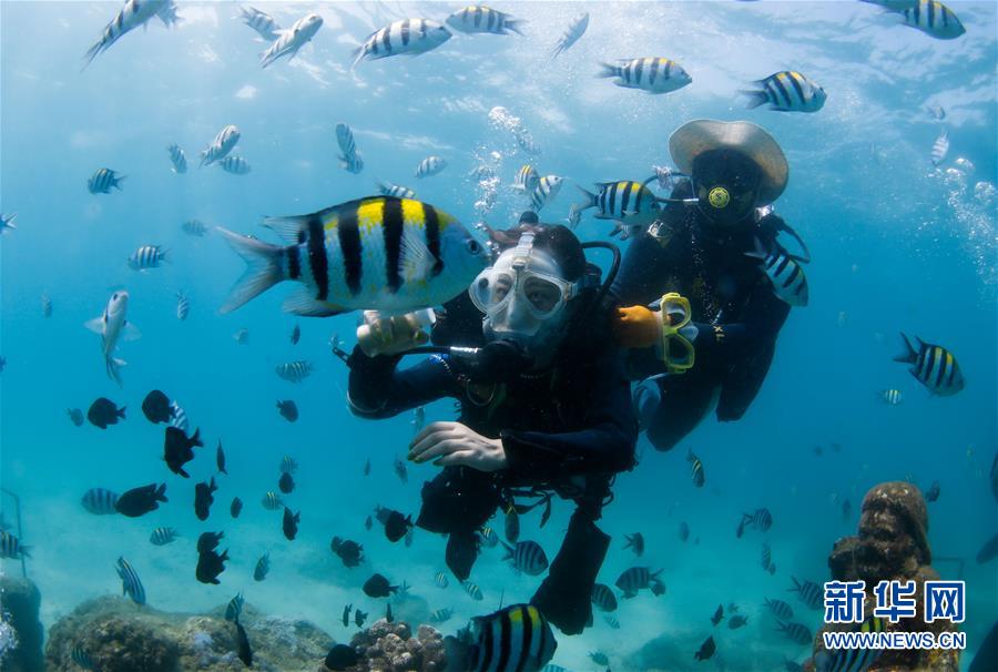 游客在分界洲島海域體驗潛水(2019年7月20日攝)。新華社記者 楊冠宇 攝