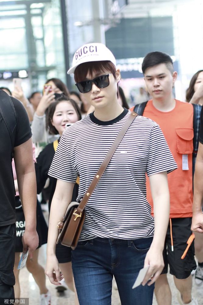 李宇春條紋裝扮現(xiàn)身機(jī)場(chǎng),青春活力,人氣爆棚