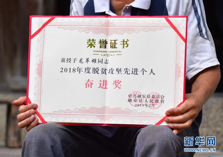 龍革雄在展示榮譽(yù)證書(8月16日攝)。新華社記者 黃孝邦 攝