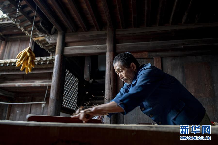 在廣西融安縣大良鎮(zhèn)古蘭村古蘭屯,村民在修繕古民居(8月18日攝)。 新華社記者 黃孝邦 攝