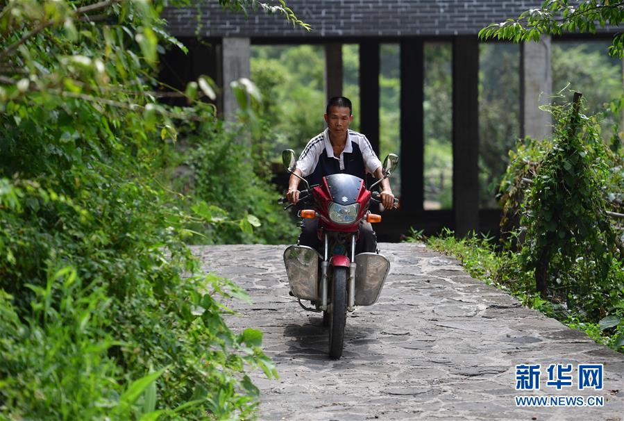 龍革雄騎車(chē)外出勞作(8月16日攝)。 新華社記者 黃孝邦 攝