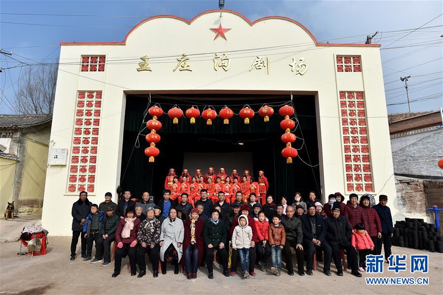 武鄉(xiāng)縣大有鄉(xiāng)王莊溝村的部分村民在劇場(chǎng)合影(2月19日攝)。 新華社記者 詹彥 攝