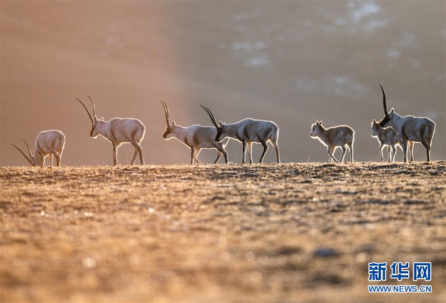 西藏羌塘自然保護區(qū)內的藏羚羊(2019年1月31日攝)。新華社記者 普布扎西 攝