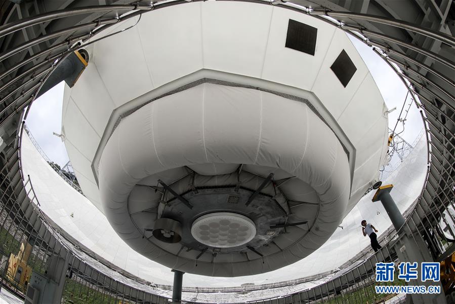 8月28日,工作人員在“中國天眼”內(nèi)進行檢修。新華社記者 歐東衢 攝